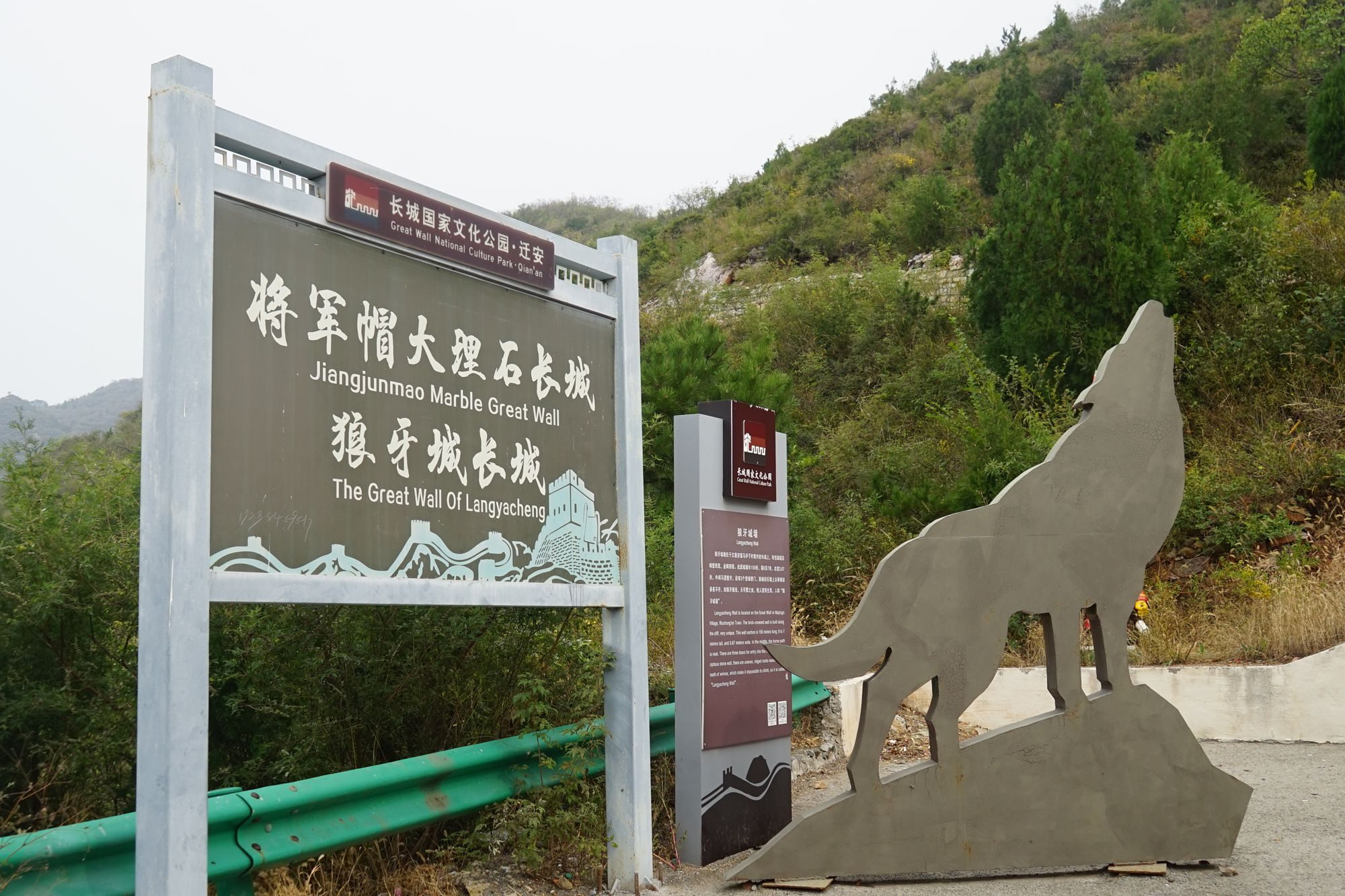 沿着指示牌继续前行,将军帽大理石长城的磅礴独特和狼牙城长城的惊险总会带给人们双倍惊喜和震撼。前者因城墙石材如将军头盔纹理而得名,后者则因城墙顶部凸起的垛口形似狼牙得名,这一段长城保存完整,非常值得打卡。