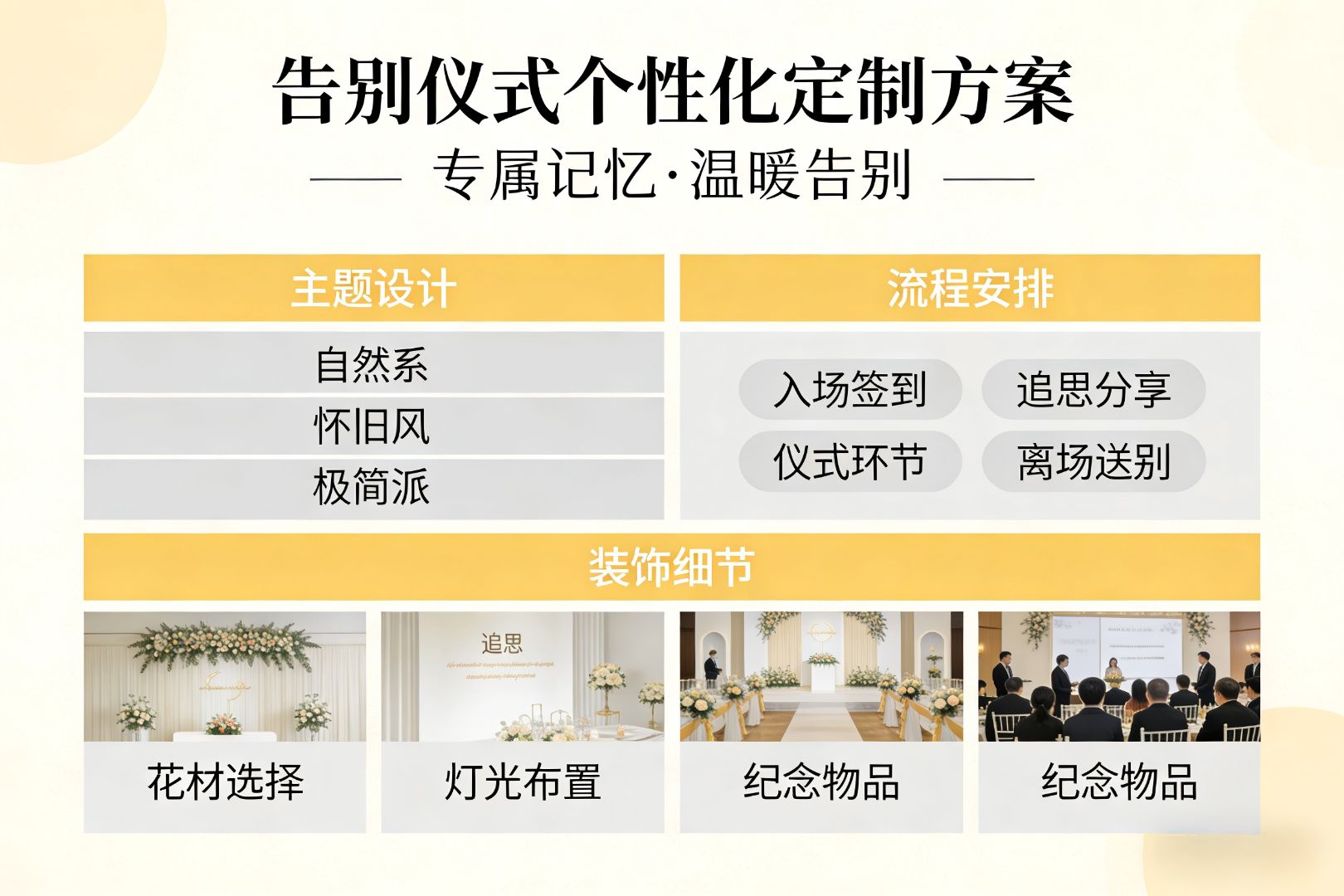 告别仪式是逝者人生的最后一场仪式,也是家属表达哀思、与逝者告别的重要时刻。一个精心策划的告别仪式不仅能够让逝者体面地离开,也能够帮助家属在悲伤中得到情感的释放和安慰。归息告别事务所提供专业的告别仪式策划服务,根据逝者的生平、爱好和家属的需求,为家属定制个性化的告别仪式方案,让每一场告别仪式都成为独特、难忘的回忆。本文将为您详细介绍归息告别事务所的告别仪式策划服务,帮助您了解如何为逝者策划一场个性化的告别仪式。如果您需要专业的告别仪式策划服务,可随时联系归息告别事务所,我们提供24小时全国殡葬热线95154,为您提供全方位的殡葬服务支持。 一、告别仪式的基本概念 1. 告别仪式的定义 - 告别仪式是为逝者举行的最后一场仪式,是家属与逝者告别的重要时刻 - 旨在表达对逝者的哀思和敬意 - 帮助家属在悲伤中得到情感的释放和安慰 - 是殡葬流程中的重要环节 2. 告别仪式的意义 - 为逝者的人生画上圆满的句号 - 帮助家属接受逝者离世的事实 - 为家属提供情感支持和安慰 - 传承逝者的精神和价值观 3. 告别仪式的类型 - 传统告别仪式:遵循传统的殡葬礼仪和流程 - 个性化告别仪式:根据逝者的生平、爱好定制 - 宗教告别仪式:按照宗教习俗和规定举行 - 家庭式告别仪式:仅由家人参加的小型告别仪式 二、告别仪式策划的流程 1. 需求沟通 - 了解逝者的生平、爱好、职业、宗教信仰等 - 了解家属的需求和期望 - 了解家属的宗教信仰和文化背景 - 了解告别仪式的预算和时间安排 2. 方案设计 - 根据逝者的情况和家属的需求设计个性化的告别仪式方案 - 确定告别仪式的主题、风格和流程 - 选择合适的告别厅和场地布置方案 - 设计告别仪式的具体环节和内容 3. 方案确认 - 向家属展示告别仪式策划方案 - 听取家属的意见和建议 - 对方案进行必要的调整和修改 - 最终确认告别仪式策划方案 4. 准备工作 - 准备告别仪式所需的用品和设备 - 布置告别厅,营造合适的氛围 - 安排告别仪式的工作人员和志愿者 - 与相关人员沟通,确保各项准备工作顺利进行 5. 仪式执行 - 按照预定的流程执行告别仪式 - 协调各方人员的工作和配合 - 处理仪式中的突发情况 - 确保告别仪式顺利、庄重地进行 6. 后续服务 - 整理告别仪式的相关资料和照片 - 为家属提供必要的心理支持和安慰 - 协助家属处理后续的殡葬事宜 - 收集家属的反馈,不断改进服务质量 三、个性化告别仪式的策划要点 1. 主题设计 - 根据逝者的生平、爱好、职业等确定告别仪式的主题 - 主题应体现逝者的个性和精神特质 - 主题应简洁、明确、有意义 - 主题应得到家属的认可和支持 2. 场地布置 - 根据主题和风格布置告别厅 - 使用逝者生前喜爱的颜色、花卉等元素 - 展示逝者的照片、遗物、成就等 - 营造温馨、庄重、个性化的氛围 3. 流程设计 - 设计独特、有意义的仪式流程 - 包括逝者生平回顾、亲友致辞、音乐播放等环节 - 可以加入逝者生前喜爱的活动或元素 - 流程应紧凑、流畅、有节奏感 4. 音乐选择 - 选择逝者生前喜爱的音乐 - 选择适合告别仪式氛围的音乐 - 可以邀请亲友现场演奏或演唱 - 音乐应能够引起家属的情感共鸣 5. 个性化元素 - 加入逝者生前的爱好和特长相关的元素 - 可以展示逝者的作品、收藏品等 - 可以组织与逝者生前相关的活动或仪式 - 个性化元素应与告别仪式的整体风格协调一致 四、不同类型告别仪式的策划 1. 传统告别仪式 - 遵循传统的殡葬礼仪和流程 - 注重仪式的庄重性和规范性 - 包括诵经、鞠躬、献花等传统环节 - 适合注重传统礼仪的家庭 2. 宗教告别仪式 - 按照宗教习俗和规定举行 - 邀请宗教人士主持仪式 - 包括宗教仪式、祈祷、诵经等环节 - 适合有宗教信仰的家庭 3. 个性化告别仪式 - 根据逝者的生平、爱好定制 - 加入逝者生前喜爱的元素和活动 - 形式灵活多样,注重个性化表达 - 适合希望为逝者举办独特告别仪式的家庭 4. 家庭式告别仪式 - 仅由家人参加的小型告别仪式 - 氛围温馨、私密 - 注重家庭成员之间的情感交流 - 适合希望低调处理丧事的家庭 五、告别仪式策划的注意事项 1. 尊重逝者 - 始终保持对逝者的尊重和敬意 - 告别仪式的策划应体现逝者的意愿和价值观 - 避免使用可能冒犯逝者或家属的元素 - 确保告别仪式的庄重性和严肃性 2. 考虑家属 - 考虑家属的情感需求和承受能力 - 避免过于悲伤或刺激的环节 - 为家属提供必要的心理支持和安慰 - 确保家属在仪式中得到情感的释放和安慰 3. 合理预算 - 根据家庭的经济状况制定合理的预算 - 避免铺张浪费,注重仪式的意义和价值 - 归息告别事务所提供透明的价格体系,让家属放心选择 - 可以根据预算调整仪式的规模和内容 4. 协调各方 - 与殡仪馆、家属、亲友等各方进行充分沟通 - 确保各方的需求和意见得到合理的考虑 - 协调各方的工作和配合,确保仪式顺利进行 - 处理可能出现的分歧和问题 5. 细节把控 - 注重告别仪式的细节,确保每个环节都完美 - 注意场地布置、音乐选择、流程安排等细节 - 确保所有设备和用品正常运行 - 准备应急预案,处理可能出现的突发情况 六、归息告别事务所的告别仪式策划服务 1. 专业团队 - 拥有经验丰富的告别仪式策划团队 - 策划师具备专业的知识和创意能力 - 团队成员分工明确,配合默契 - 能够为家属