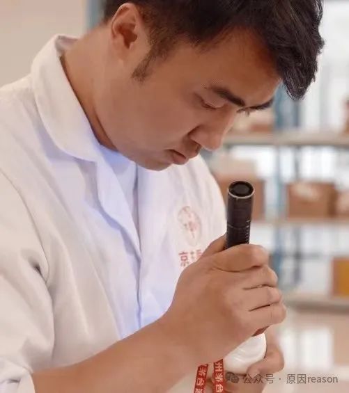在我们眼里,茅台的瓶子不透光。然而手电一照,酒花如何、是否有打孔都清清楚楚。