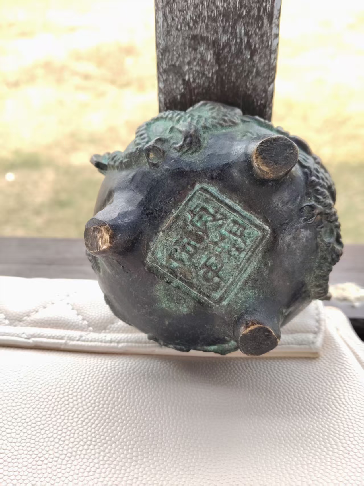 轻抚炉身,鎏金纹饰在铜绿间流转出时光的韵律:腹部卷草纹中,鸿雁振翅欲飞,既暗合 “雁足传书” 的丝路繁华,又隐喻 “鸿图大展” 的国运昌隆;兽首形三足怒目圆睁,是守护家国的忠诚象征;炉底 “贞观五年造” 的篆书款识,笔力沉雄如颜筋柳骨,刀痕至今清晰可辨。