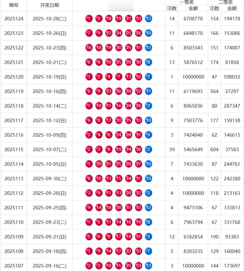 近二十期一等奖,二等奖开奖结果如下