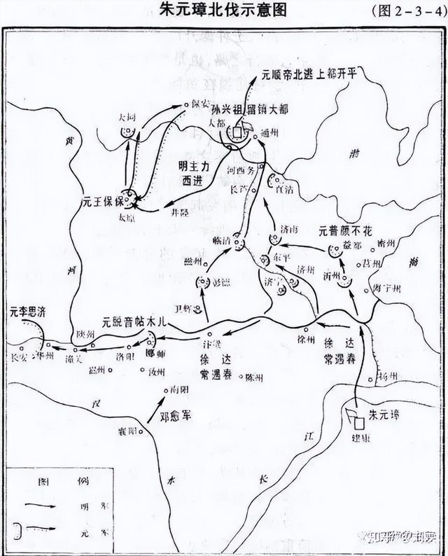 因此,1368年七月,徐达在山东临清,正式誓师,北伐大都,接连攻下沧州和直沽(今天津),七月二十五日败元军于河西务(今天津市武清东北),七月二十八日攻克北京通州,一个月的时间,因为大都的东方和南方都已经被攻克,元顺帝没办法,只好逃到北方的大草原去了,八月初二就攻克了大都,用了一个月。