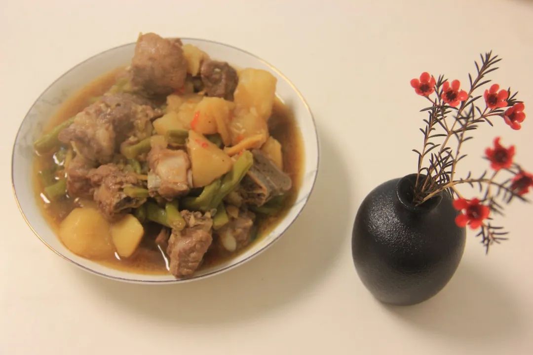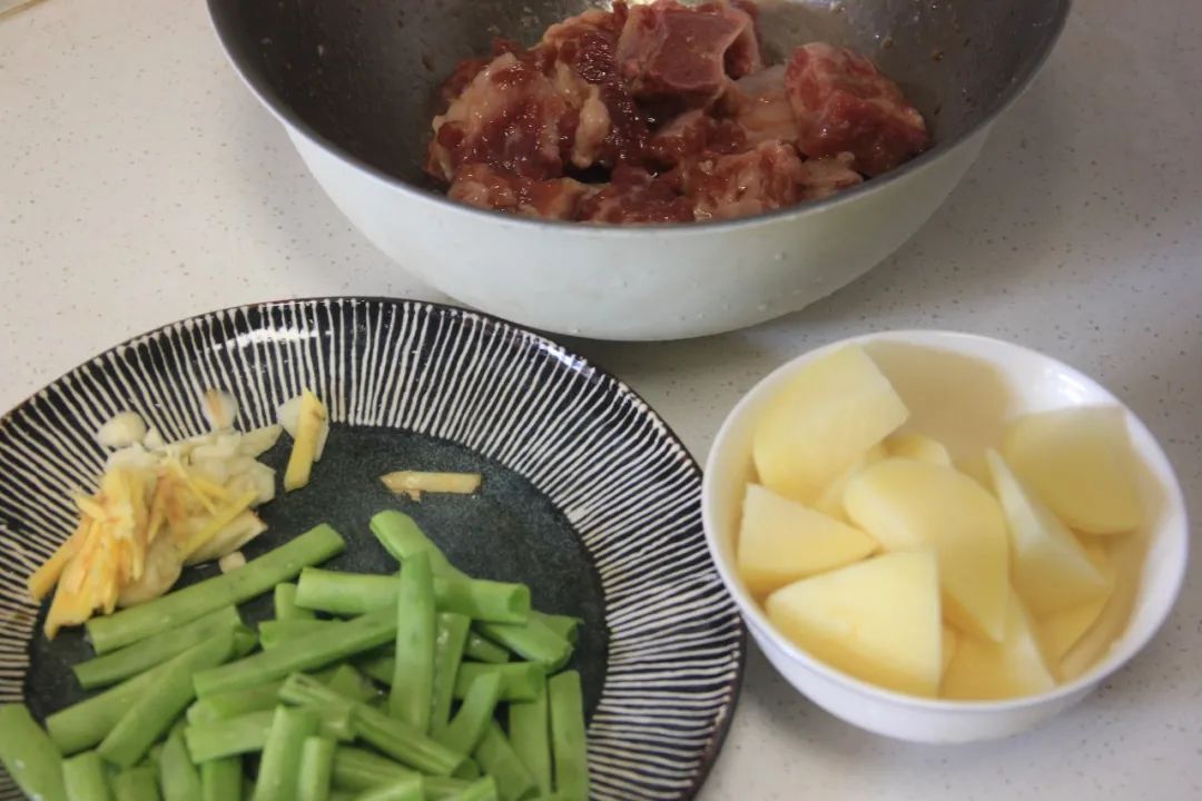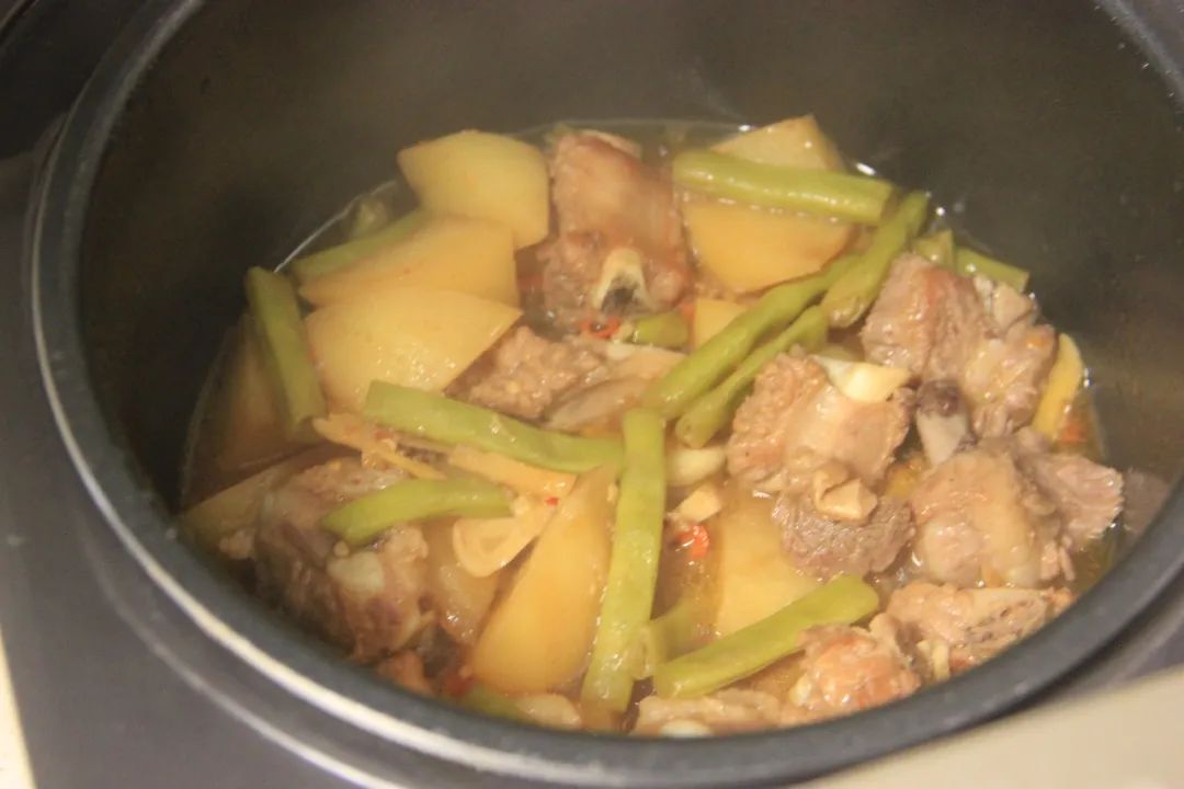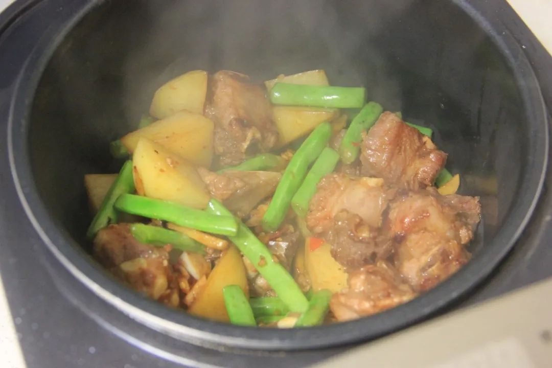 我提前将排骨土豆豆角炒了炒,不炒也OK。