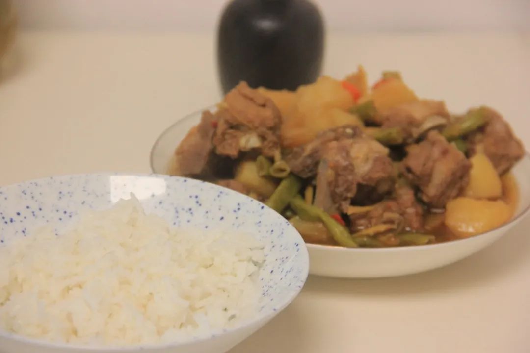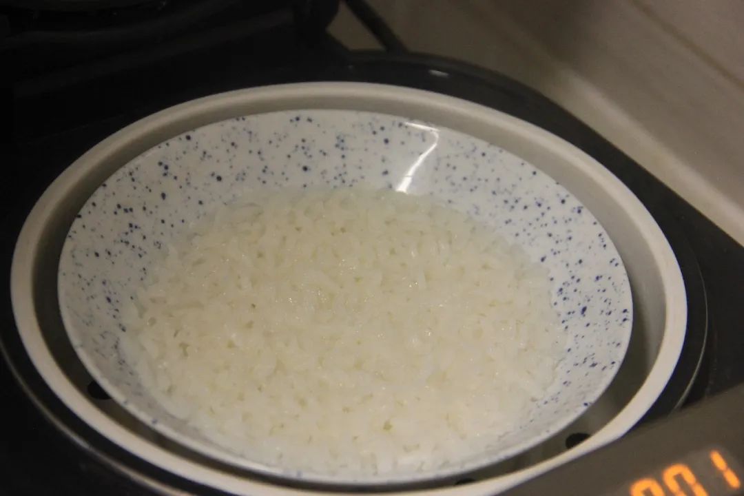 倒入一些清水,大概淹没食材2/3的位置。再蒸一碗米饭。