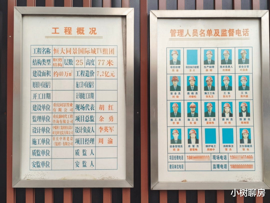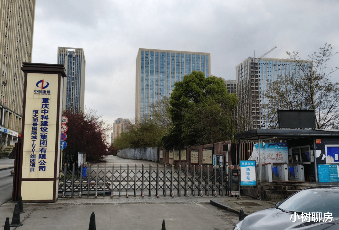 而它北边的大水坑(北地块),才是这次被送上法拍席的V地块。工地大门显示这个星时代项目叫做“恒大同景国际城TVY组团”(含南北地块),由重庆中科建设(集团)有限公司承建,建筑面积约40万㎡,工程造价约7.2亿。建设单位为重庆同景置业,主要股东正是恒大集团。