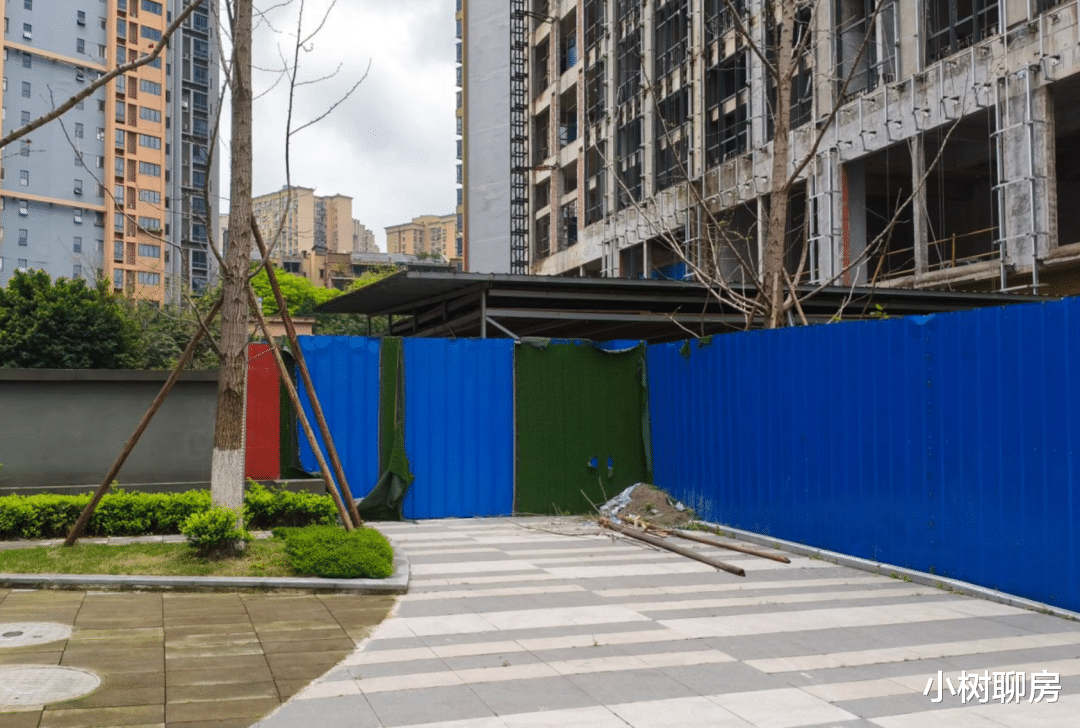 小树观察了一下,这个组团共由四栋公寓和一个集中商业组成,其中两栋公寓已经接房,其余均处于停工状态。它的位置位于星时代项目的南端,我们且称之为南地块。