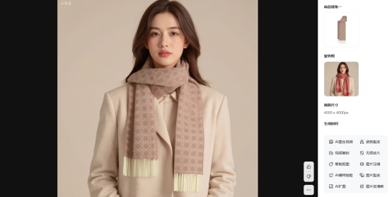 很多做围巾生意的朋友,是不是都有过这样的困扰,新品要上新了,想拍一组专业的模特上身图,要么找不到合适的模特,要么拍一次就要花大几千的成本,还要协调时间租场地,等修图又要好几天,小商家刚起步根本扛不住这个开销,有时候赶不上上新的节奏,白白错过流量期。今天这篇文章就来给大家拆解,怎么用 AI 一键生成围巾模特图,不用找专业模特不用搭实景,几分钟就能出专业级的商品图,帮大家省下大笔的拍摄和试错成本。