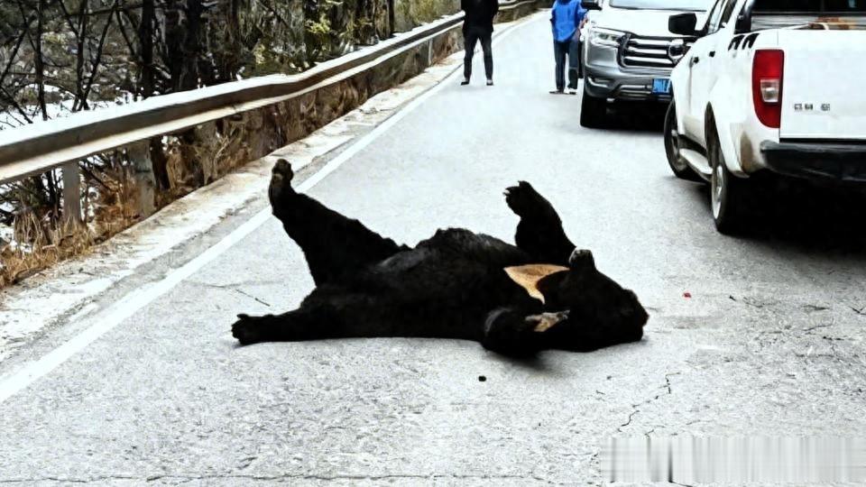 一只黑熊竟在公路上不停地翻滚!这是近日发生在四川阿坝州马尔康市松岗镇一条公路上的一幕,一只黑熊从山上滚落至公路上,在地面反复扭动翻滚,周围有不少路人停车围观。那么黑熊为何会在公路上不停打滚呢?