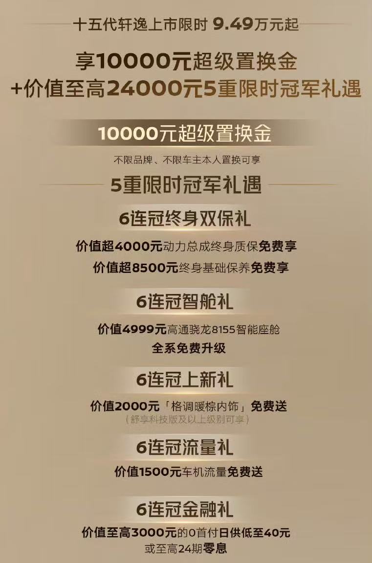 为回馈消费者长期以来的信赖与支持,东风日产为轩逸全系推出动力总成终身质保专属权益,以硬核保障让用车更安心。同时,针对轩逸家族不同车型,分别定制专属礼遇,涵盖置换支持、用车保障、智能体验等多个维度,以实实在在的权益,陪伴家庭每一次出行。
