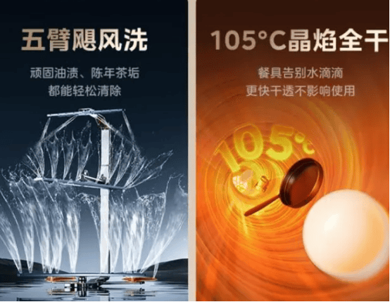 在烘干方面,GX1000Max采用晶焰速干技术,能够快速将碗篮、餐具和内腔完全干燥,洗烘时间相比传统洗碗机缩短40%。9分钟闪干模式,非常适合急需使用餐具的场合。高温除菌洗和四星消毒功能,通过高温洗涤和喷淋,有效杀灭餐具表面的细菌和病毒,完美替代传统消毒柜。