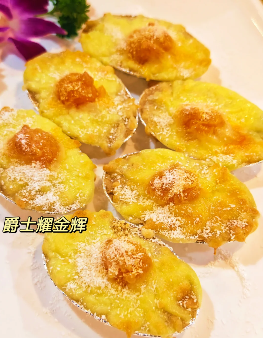 上面一层芝士跟咸蛋黄,干干巴巴的。