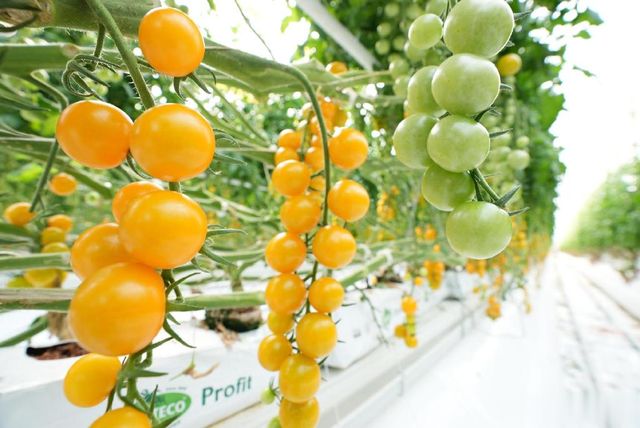 走进产业园智能大棚,一排排番茄秧苗整齐排列,叶面鲜绿,垂吊的藤蔓上挂满了沉甸甸的番茄,有嫣红的、嫩绿的,个个晶莹剔透,饱满多汁,工人们忙着采摘、分拣、装箱。产业园的番茄采用椰糠作为栽培基质,运用双层高分子功能膜覆盖系统、多层次管道加热系统、智能精准控制系统、二氧化碳回收利用系统等技术体系,产出的鲜食类番茄沙瓤多汁、糖度适宜。霍尔果斯番茄、霍尔果斯樱桃番茄已被列入全国名特优新农产品名录,这两种番茄的维生素C、微量元素钙、铁等营养品质均优于普通番茄,钙含量是普通番茄的6.6倍,而霍尔果斯番茄铁含量更是普通番茄的12.2倍。产业园全力打造以纯天然绿色水果蔬菜种植为主,集“赏、栽、培、产、销、研、制”等功能于一体的农业综合体,培育出的特色番茄深受群众喜爱。