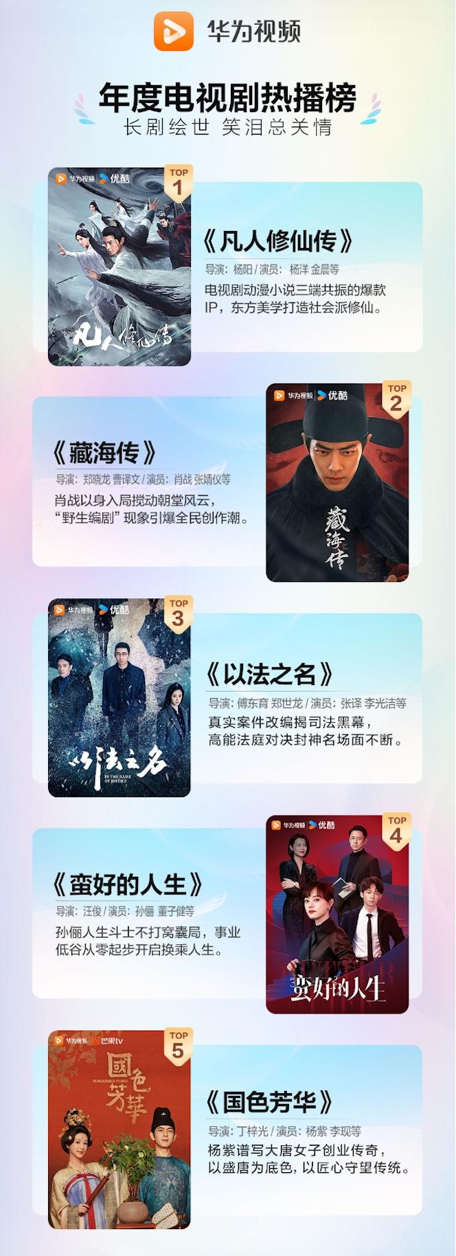 年度电视剧热播榜这块,虽然我平时是个“追剧边缘人”,但《凡人修仙传》、《藏海传》、《以法之名》这些名字可太熟了,都是微博热搜常客呀。爱追剧的小伙伴,欢迎一起来聊聊,你们心中的TOP1是哪个?
