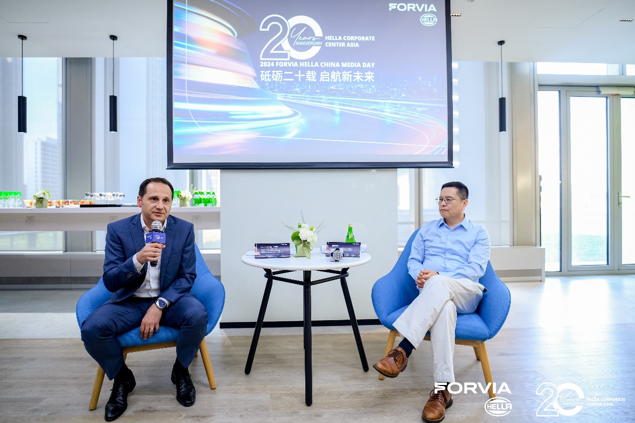在亚洲总部成立20周年媒体交流活动中,海拉(上海)管理有限公司总经理兼佛瑞亚海拉中国区财务控制执行副总裁Heiko Laessig先生和佛瑞亚海拉中国区电子事业部执行副总裁兼集团电子事业部执行董事会成员白彬毅先生,再次强调了中国市场,以及在这场快速推进汽车变革中创新的重要性。