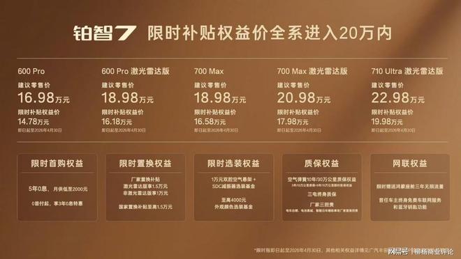 广汽丰田建立了用户直连机制,根据用户反馈对车型进行过多轮优化,例如针对用户对空气悬架耐用性的担忧,推出 10 年 / 30 万公里质保;针对电池衰减顾虑,明确超出限定阈值可免费更换电池。这种 "用户反馈 - 产品优化 - 服务升级"的闭环,让铂智 7 成为真正意义上" 用户参与定义 " 的产品,而非传统车企闭门造车的产物。