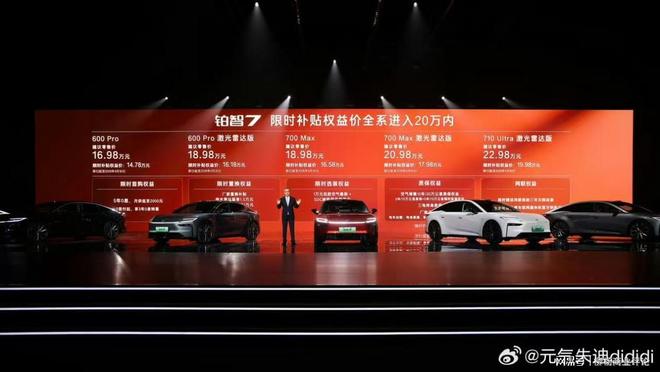 铂智 7 的核心竞争力首先体现在颠覆性的定价策略上。这款车身尺寸达5130/1965/1506mm,轴距 3020mm 的中大型轿车,以 14.78 万元起的价格直接杀入主流 B 级纯电市场,实现 "D 级车尺寸,B 级车价格"的降维打击。这种定价并非简单的价格战,而是建立在" 配置一步拉满、安全一步兜底 " 的产品逻辑之上。
