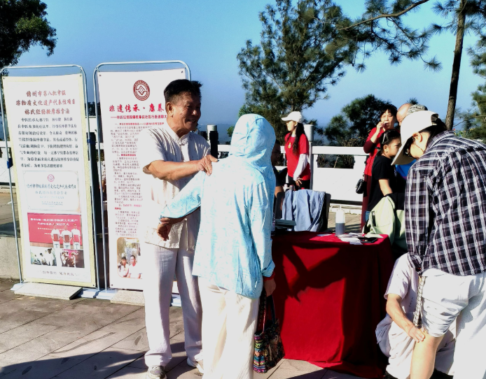 在活动休息区,林氏经络按摩推拿法的三位传承人正为登高归来的市民提供免费按摩推拿服务,帮助大家缓解登高后的疲劳。市级代表性传承人林壮健一边为市民按摩,一边介绍:“经络按摩推拿通过点按穴位、舒筋活络,有助于促进气血循环,是一种具有养生保健作用的自然方式。此次活动不仅倡导全民健身,也让非遗技艺走进了更多人的视野。我们要让非物质文化遗产更好地服务大众、惠及群众。”