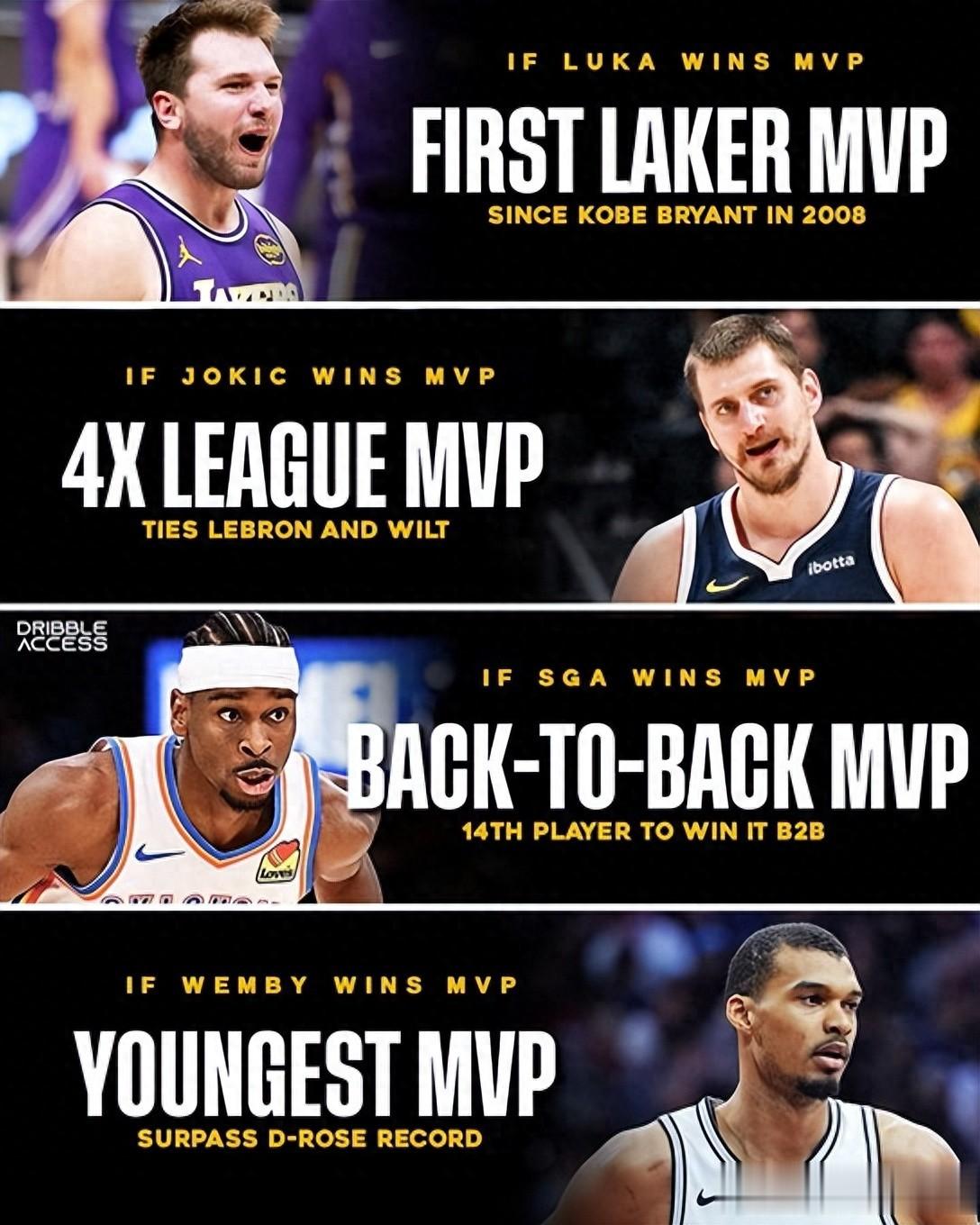这不再仅仅是一场赛季表现的评比,这更像是一场通往NBA历史众神殿的终极考核。 这四个人:卢卡·东契奇、尼古拉·约基奇、谢伊·吉尔杰斯-亚历山大和维克托·文班亚马,每一个人身后都背负着足以震动联盟的历史命题。