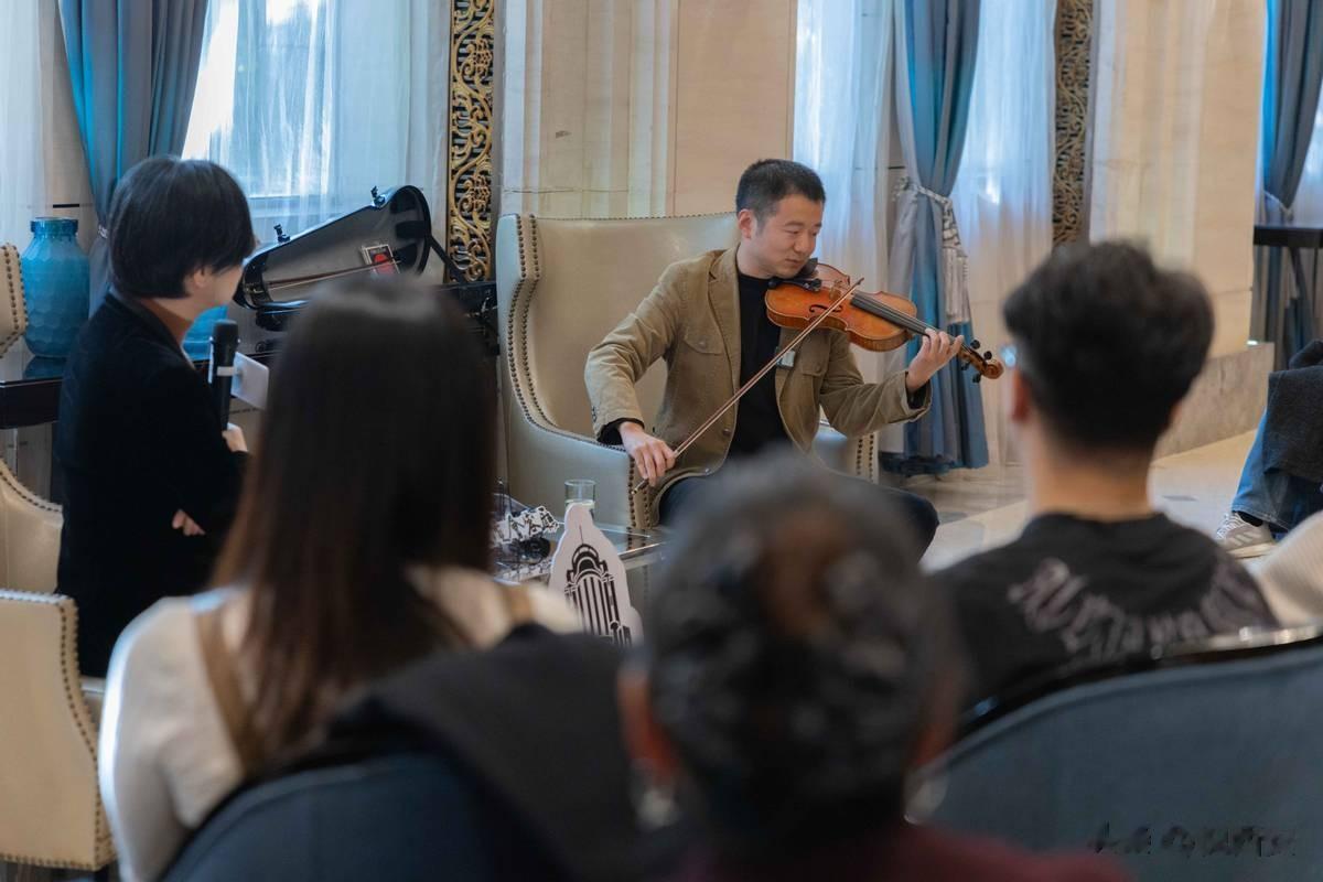 活动期间,艺术氛围与优雅场景深度融合,宾客们享受了一场浪漫的音乐私享会。青年小提琴家米哲以《梁祝》与《罗密欧与朱丽叶》两首经典小提琴曲为线索,展开了一场“音乐讲演+现场演奏+思想对谈”的跨界对话,并以“演奏+解读”的形式,带领观众解锁中西方“爱情悲剧”的音乐表达密码。通过解析揉弦、跳弓等小提琴技法,以及旋律走向、节奏变化,拆解音乐如何传递甜蜜、挣扎、悲恸等故事情感;并与观众互动提问、开放交流、深化情感共鸣。