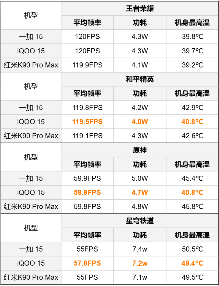 iQOO 15:性能释放最激进,高负载游戏帧率小幅领先,温控表现优秀,适合追求极致帧率的玩家;