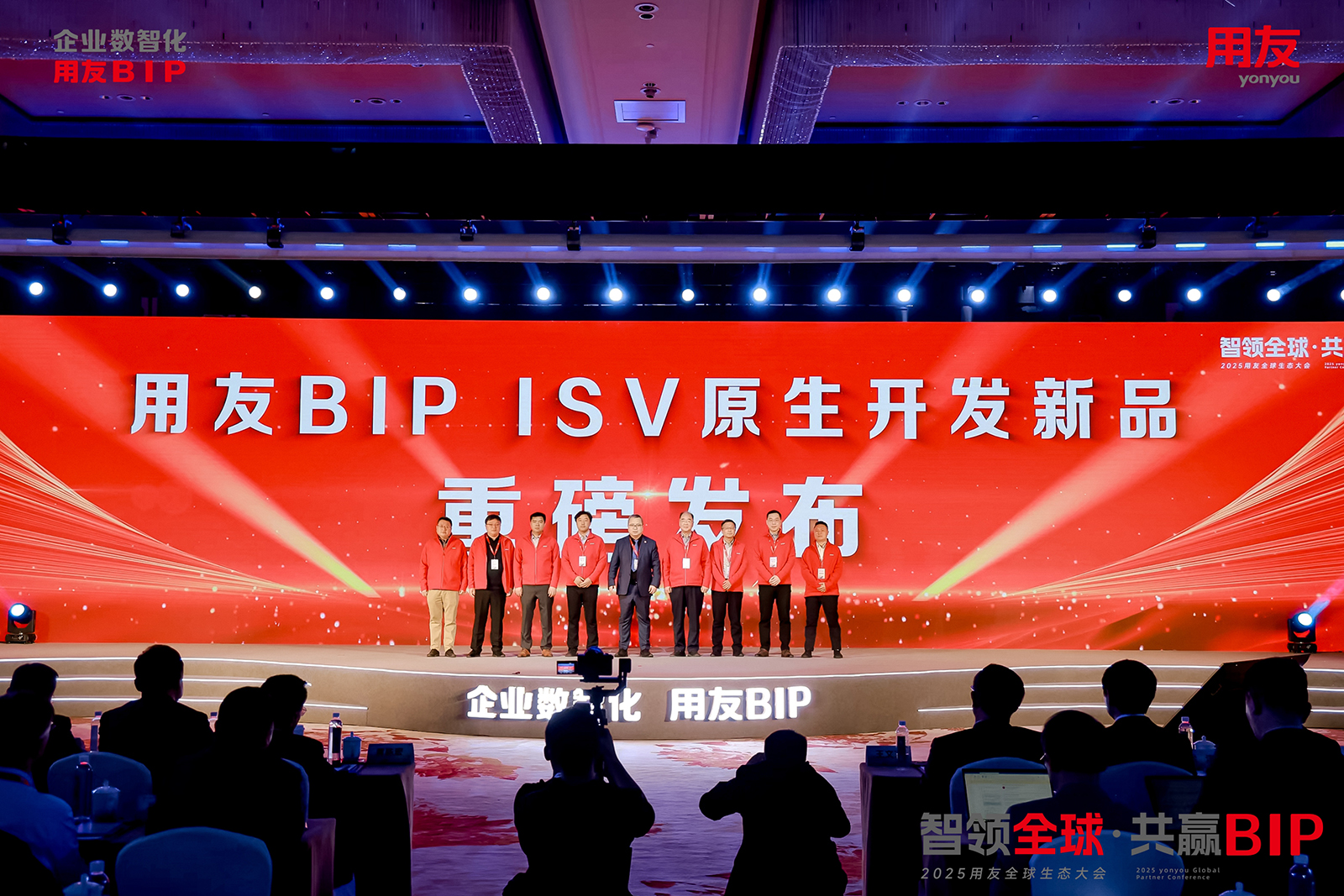 会上,用友携手多家ISV伙伴,重磅发布8款基于用友BIP原生开发的产品。