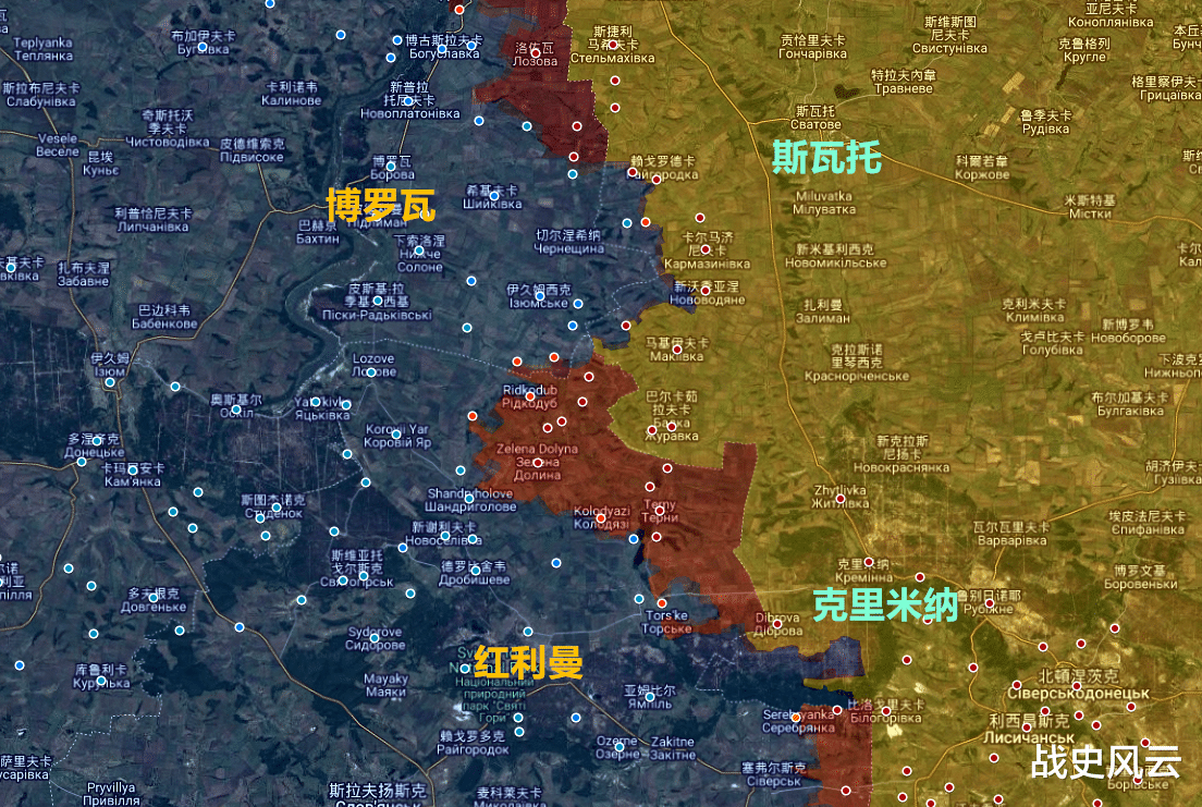 而第20集团军在红利曼方向打出一个巨大的突出部,虽然乌军这边宣传把俄军打得很惨,但解释不了战线却不断向红利曼靠近的事实。
