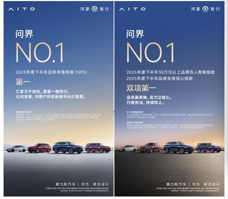 近日,杰兰路咨询发布《2025下半年新能源汽车品牌健康研究报告》。报告显示,问界荣获品牌NPS(净推荐值)第一、品牌发展信心指数第一、30万元以上品牌百人青睐指数第一;问界旗下“双旗舰王牌”,再添口碑佳绩:全景智慧旗舰SUV问界M9荣获车型NPS (净推荐值) 第一,家庭智慧旗舰SUV问界M8首次参评即荣获NPS (净推荐值) 第二。这一系列亮眼成绩,无不彰显问界在高端新能源赛道的引领地位。