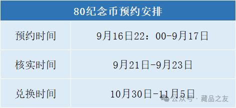 不少已经成功预约的朋友,想要知道兑换时间。80纪念币的后续安排已经公布。