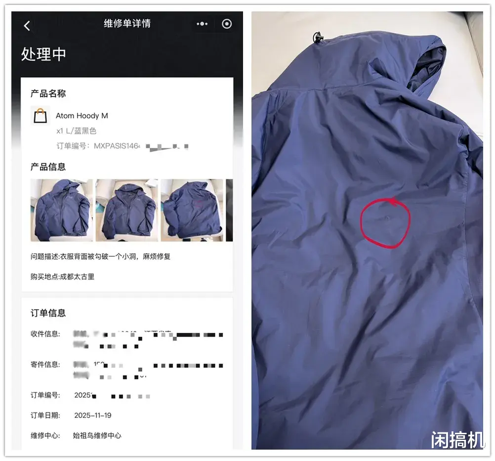 更惨的是,搬运上楼的时候,我还把媳妇上月刚给我买的始祖鸟羽绒服勾破一个洞,这损失比显示器还大,只能申请维修,据说会贴块补丁上去,人送外号“重生之鸟”,造孽啊。