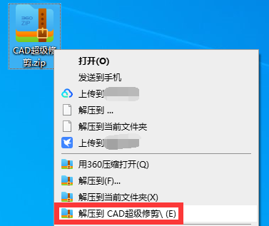 1、得到压缩包之后,鼠标右键解压,点击【解压到CAD超级修剪】。