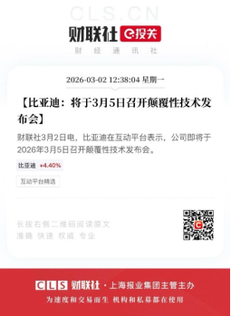 技术始终是比亚迪的核心底气,近期更是接连释放利好信号。3月2日,比亚迪通过互动平台官宣,将于3月5日举办颠覆性技术发布会,消息一经发布立刻引爆资本市场,当日公司A股股价直接上涨8.36%。资本市场的这份正向反馈,恰恰印证了投资者对比亚迪技术实力的认可,也折射出市场对其未来发展的满满信心。