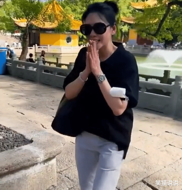 有网友在普陀山偶遇到邱淑贞,并晒出了偶遇到她时拍的照片和视频。邱淑贞穿着黑色的翻领短袖上衣,搭配浅灰色的长裤,穿着运动鞋,扎着丸子头,看起来十分休闲舒适。她戴着墨镜,背着背包,看起来十分低调。