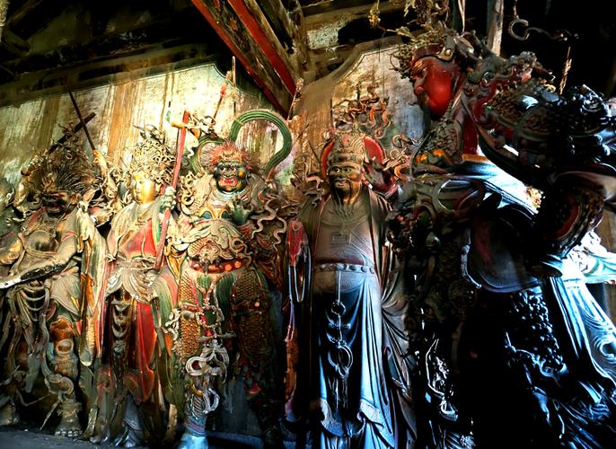 独家机位:→ 清晨拍“二十四诸天殿侧光”(45°光显“肌肉线条”,怒目眼神更凌厉);→ 午后拍“沥粉堆金特写”(微距镜头展“金粉颗粒”,显“立体质感”);→ 黄昏拍“释迦牟尼殿藻井”(逆光拍“莲花纹透光”,显“古建与彩塑交融”)。