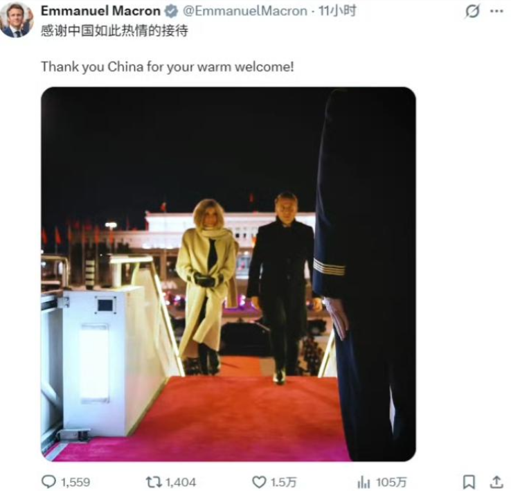 据悉,法国夫人结束访华行程,从成都出发的造型也是围着围巾,还戴着黑色手套,一身黑白配撞色打扮保暖又不失气场!