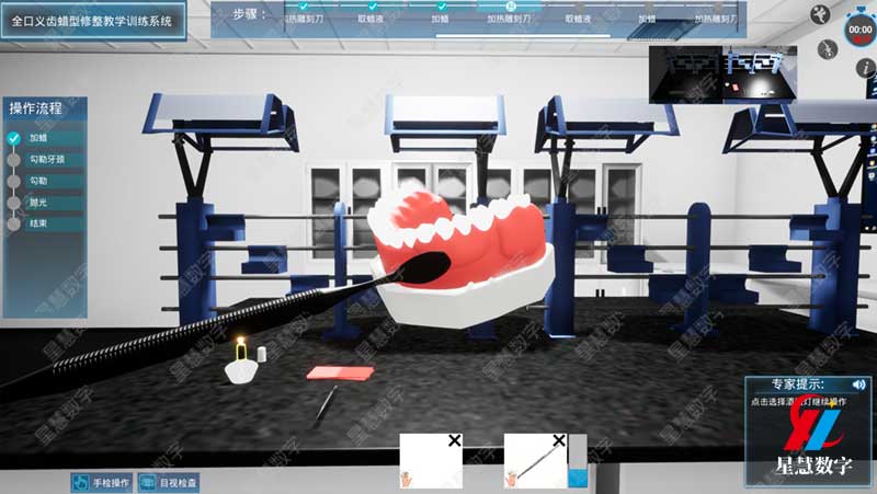 传统全口义齿蜡型修整教学课,学生围着酒精灯,刀起刀落却心里没底:基托边缘是否过短?龈沟外形够不够圆润?老师凭经验点评,难免“同一刀不同分”。如今,星慧数字在口腔数字化虚拟仿真平台里的全口义齿蜡型修整教学训练系统推出,这场毫米级精度的VR虚拟仿真教学才真正拉开帷幕。