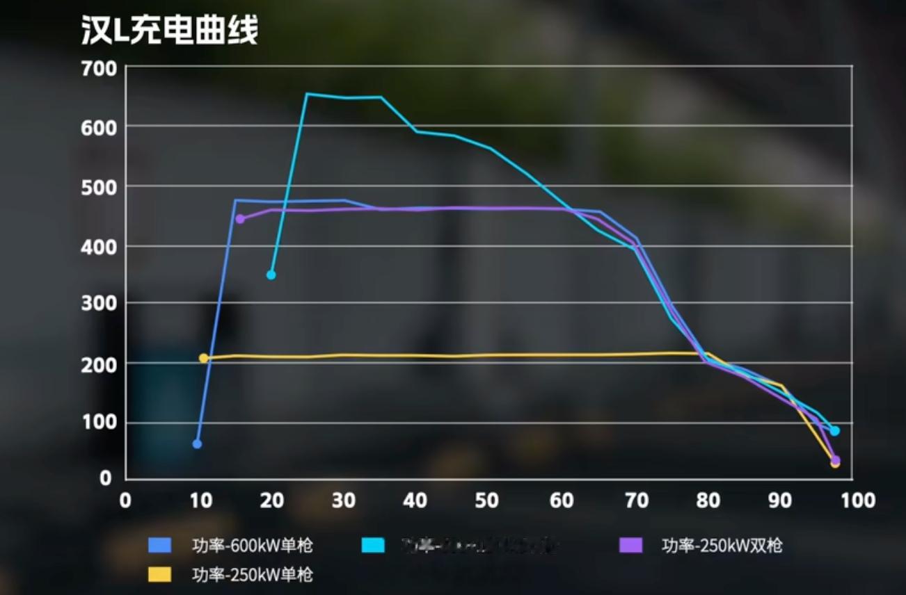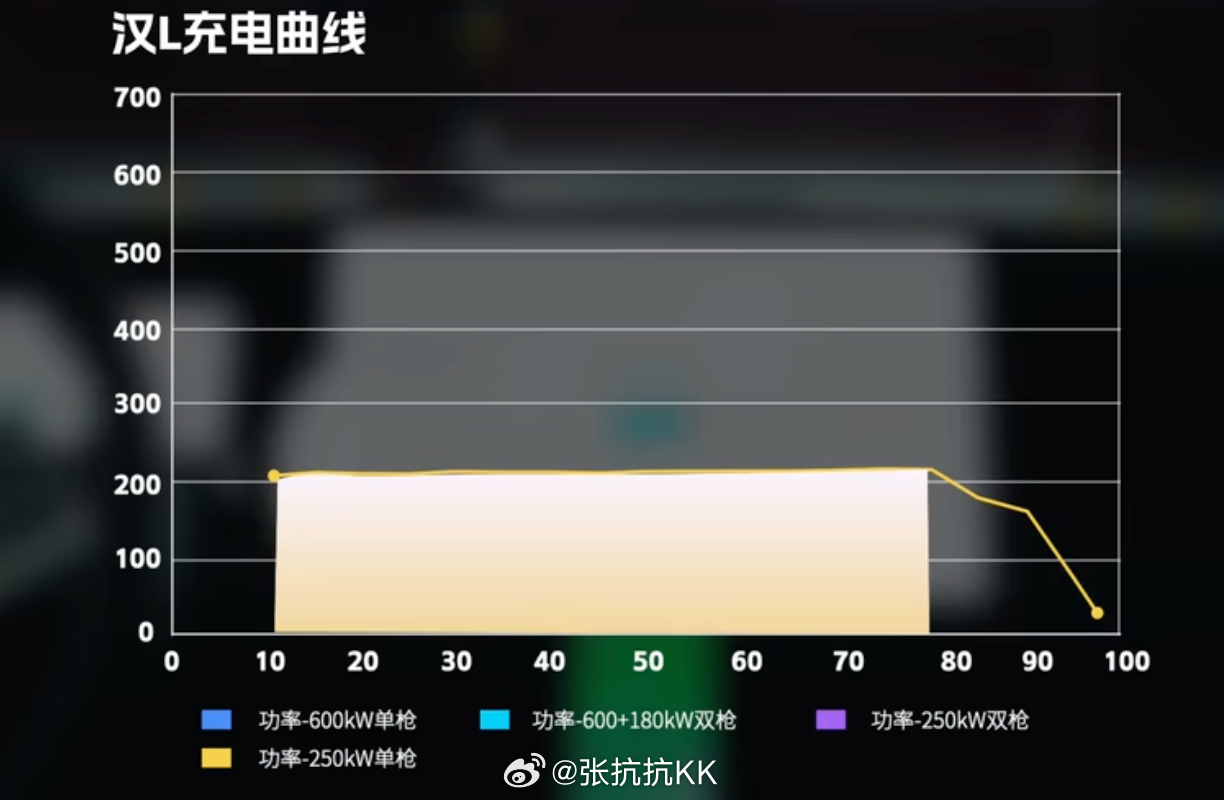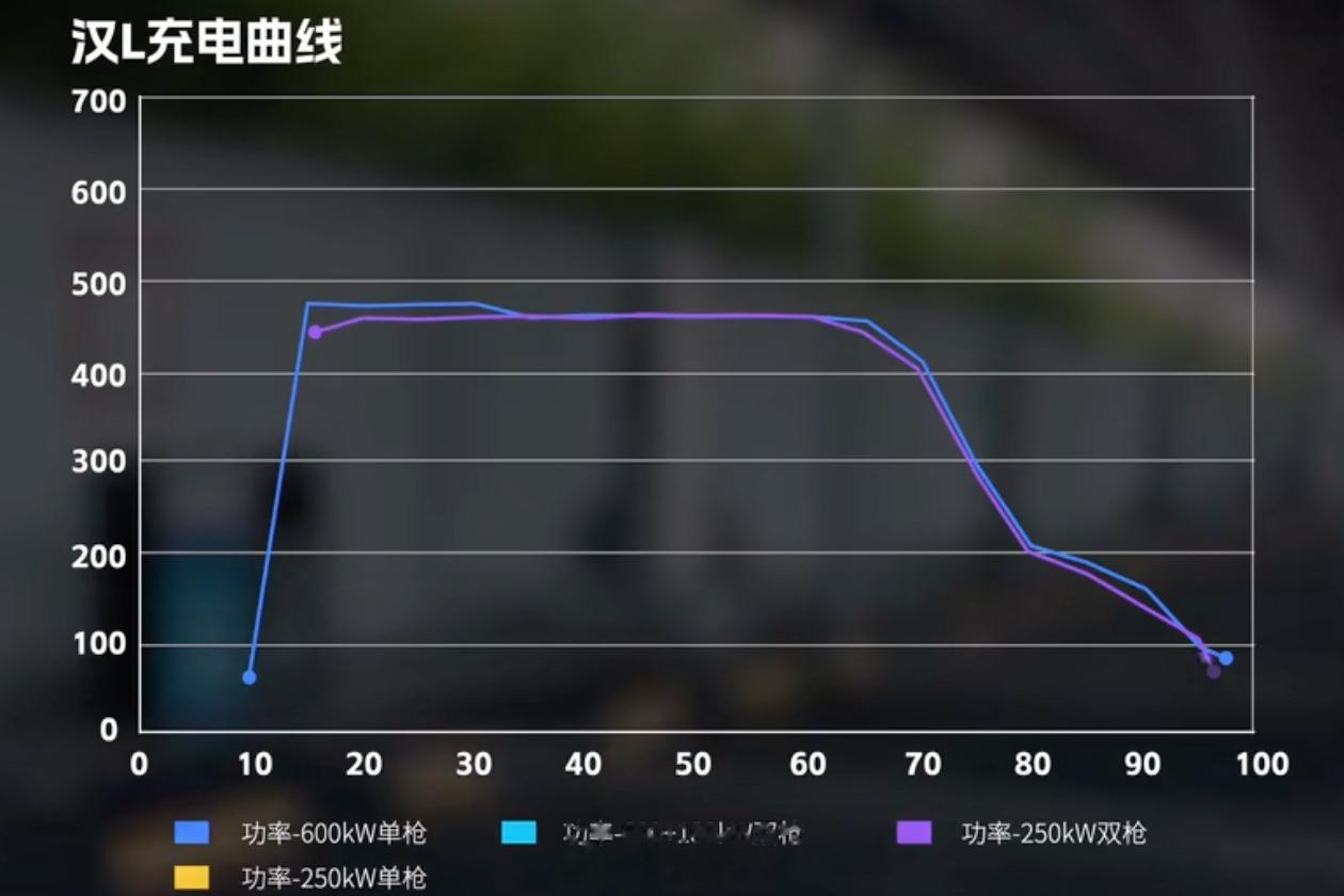 还有一个小发现,就是A枪和B枪的电流基本一致,同进同退,这说明两个充电口采用的均衡分配策略,这应该是出于散热最大化的考虑!把四条线放在一起,我们可以清晰地看到,前半部分,功率受充电桩的能力限制。后半部分,功率受车端及电池的能力限制。就这次测试下来,我感觉汉L的兆瓦闪充,有点像笑傲江湖里的吸星大法不管你是什么桩,总会把它的最大能力给全部吸干,太强了!
