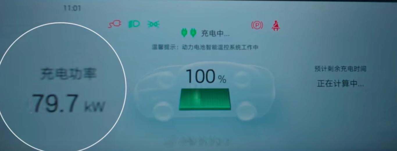 100%仪表还显示80kW!这个数据,实在是太夸张了!高速上,别的车我一般建议充到80%就拔枪,汉L的话,充到100%也不费时间。