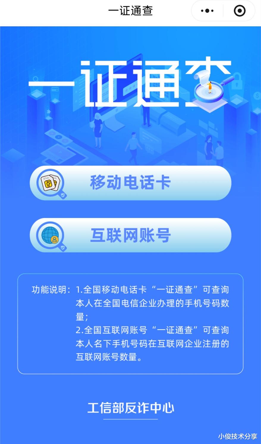 在这里有两个选项,大家看到了吧,第一个就是移动电话卡,通过这个功能,就可以快速查看你的身份证名下一共有多少个手机号,所以一旦发现不是自己使用的手机号时,一定要尽快注销,避免被他人恶意使用!