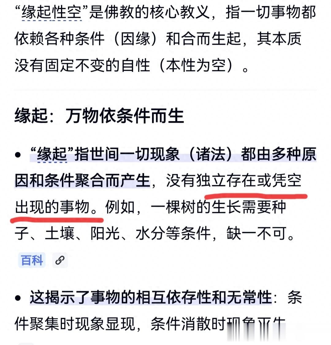 谈到“缘起性空”大家都在“空=空洞、虚无”这个领域开始胡思乱想。如下图所示其焦点在红线标注“凭空”二字说。