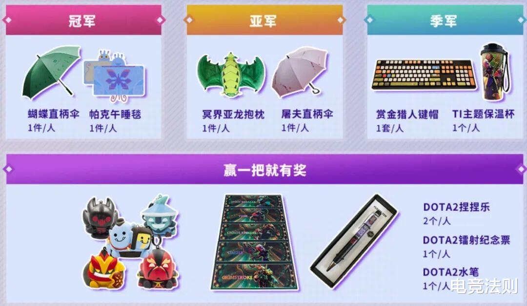 踢馆赛道获胜一场比赛的战队成员包括替补也有周边礼包奖励,前三名战队额外有奖。