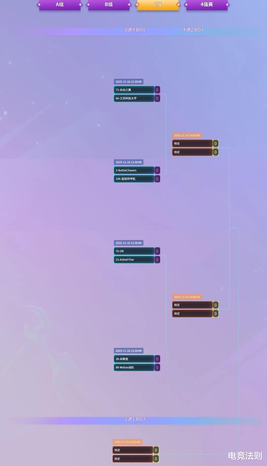 踢馆赛道的A组和B组各9支队伍,C组8支队伍,A组与B组海选11月15日开始,C组11月16日开始。每组的出线局为Bo3,其余场次为Bo1,非常考验队伍的临机应变。