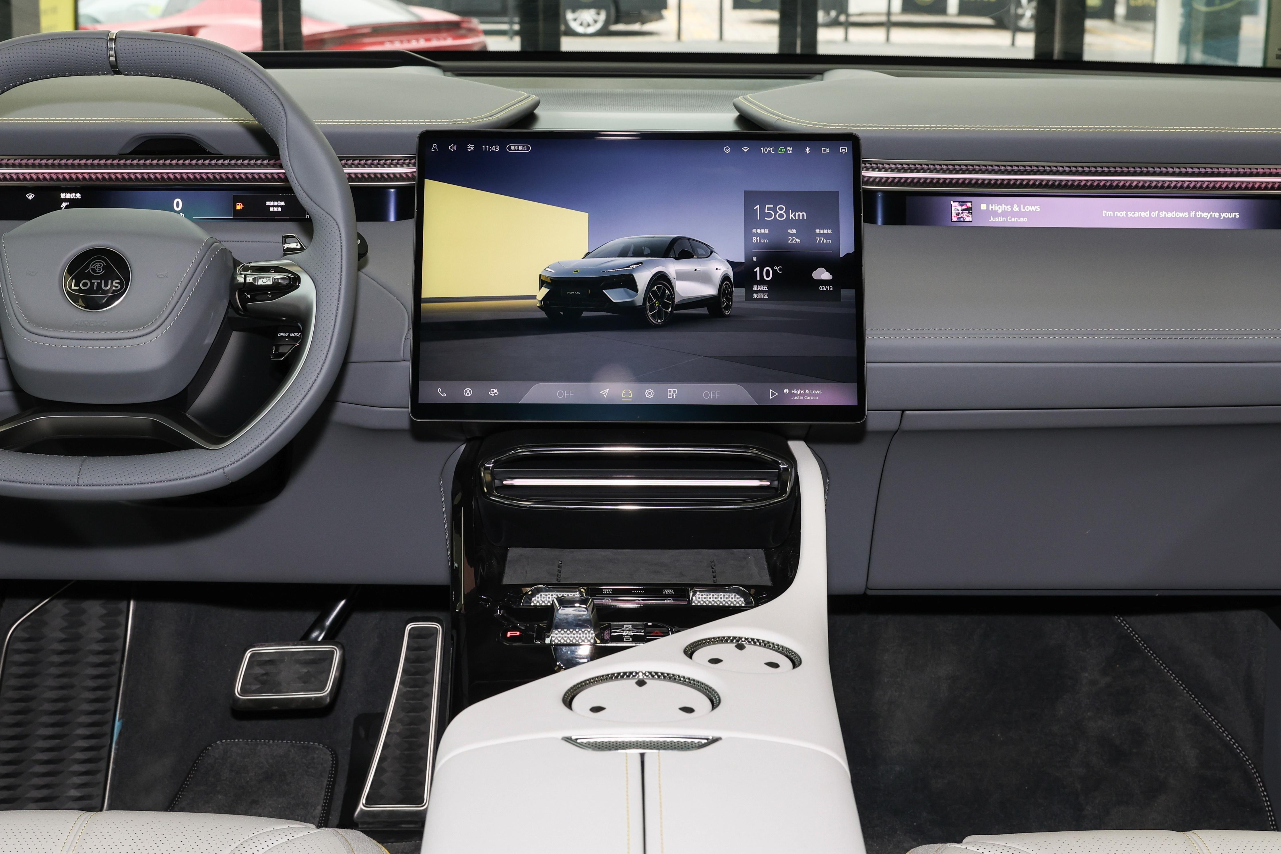 它那超5米的车身,3米多的轴距,更是打造了舒享的大空间,乘坐起来肯定舒适无疑。就说2026款莲花 FOR ME SE版,在内饰用料上,它可是延续了Eletre的科技运动风,那阶梯式中控台,还偏向驾驶员一侧,感觉设计挺新颖的,围绕主驾设计打造。车内配备了狭长的全液晶仪表、大尺寸HUD,还有悬浮OLED中控屏,后排也有独立触控屏。而且它还保留了物理拨杆和电子换挡,既有着机械质感,又有电子化的便捷,这是将传统与现代融合在了一起。尤其是车内的那个氛围灯,到了晚上灯光一打开,那满车的氛围真是让人流连忘返。