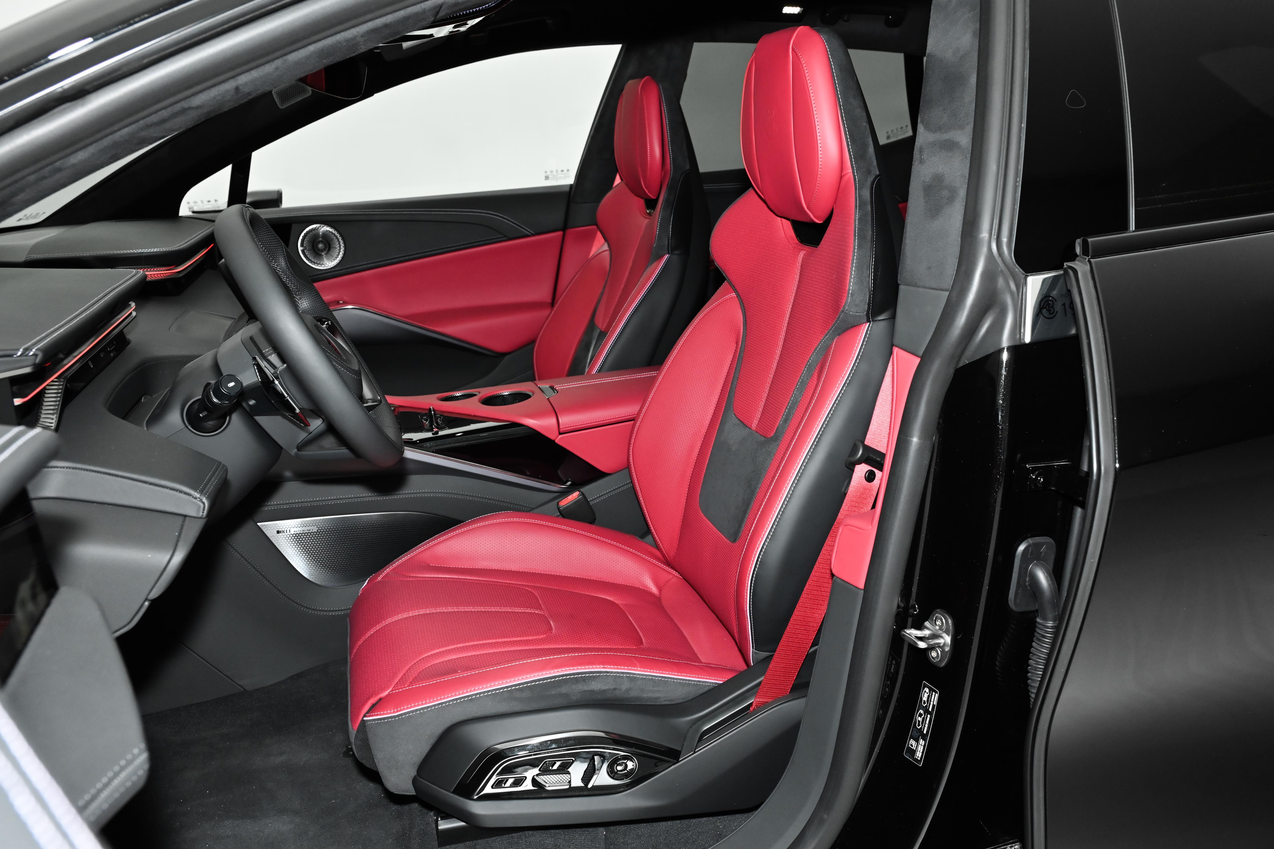 我不得不赞叹的是,这款车的用料。车内大面积使用了真皮和Alcantara翻毛皮,SE版还标配了碳纤维内饰套件,足足的豪华感。配备了23扬声器KEF音响,让咱们在车内也能享受音乐的体验。头顶那个可调PDLC智能全景天幕,可太好用了,想晒太阳就晒太阳,想遮阳就遮阳,非常方便。前排座椅支持加热、通风和按摩功能,开启Sport模式时,腰部还会自动夹紧,像一双有力的手稳稳托住咱们的腰部。后排靠背角度也可以调节,乘坐起来一样舒坦。