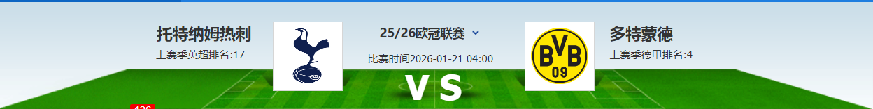 欧冠联赛阶段倒数第二轮全面展开,本场比赛由主场的热刺迎战多特。两支球队目前在联赛阶段都是取得3胜2平1负的成绩,都是积11分。多特以进球数优势力压热刺,暂时排在第10位。