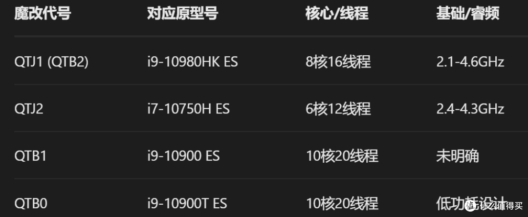 10代可以看qtj1:i9 10980hk(8c16t不锁倍频) 和qtj2:i7 10750h(6c12t锁倍频)