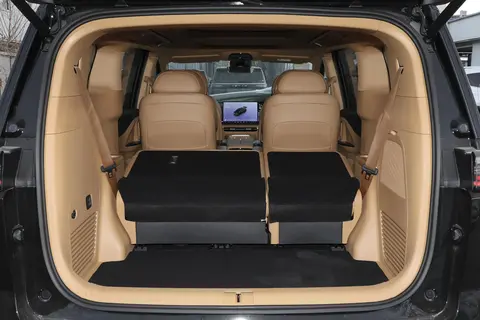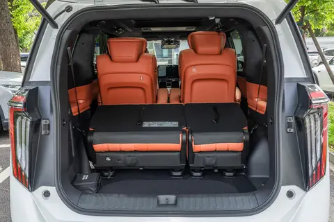 岚图梦想家凭借较大的车身尺寸,在载人空间上具有一定优势。第二排乘客的腿部空间十分充裕,即使是身高 180cm 的乘客也能轻松翘起二郎腿,头部空间也有两拳左右,不会产生压抑感。第三排空间同样表现不俗,膝部空间和头部空间相比传祺向往 M8 更为宽敞,长时间乘坐也不会感到局促。在储物空间上,其后备箱常规容积为348L,后排座椅放倒后可扩展至2700L,能较好地应对日常出行的储物需求。