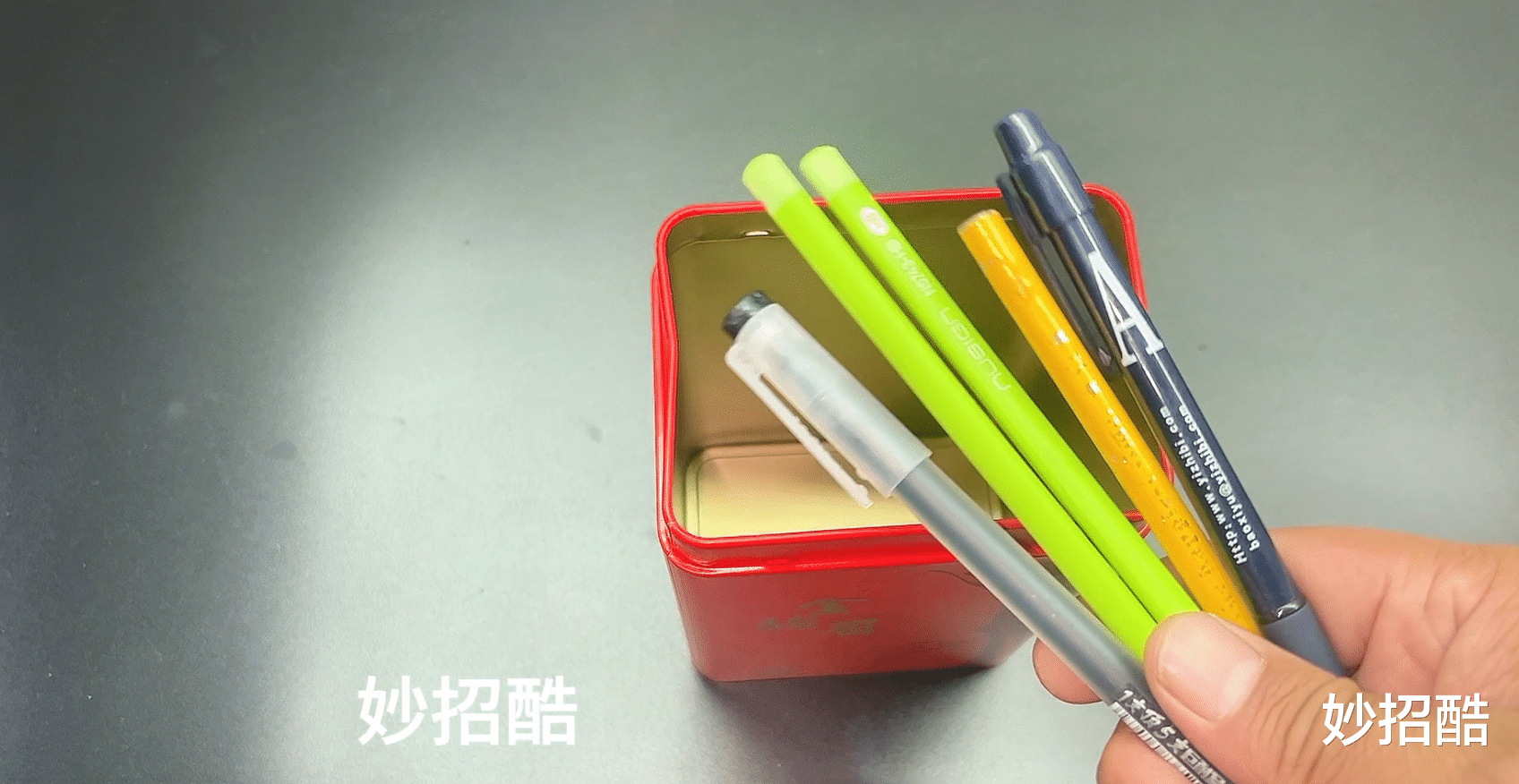 这时就可以把这些笔放到茶叶盒内代替笔筒,不仅家中显得整洁,哪怕下次我们用到笔写东西时,随时就可以找到。