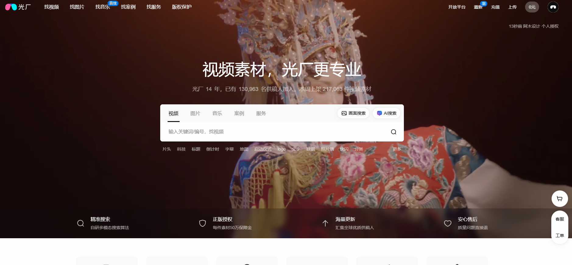 适合按项目买素材。 很多用户不是天天下素材,而是有片子才买。光厂的单条授权模式,正好适合这种需求。
