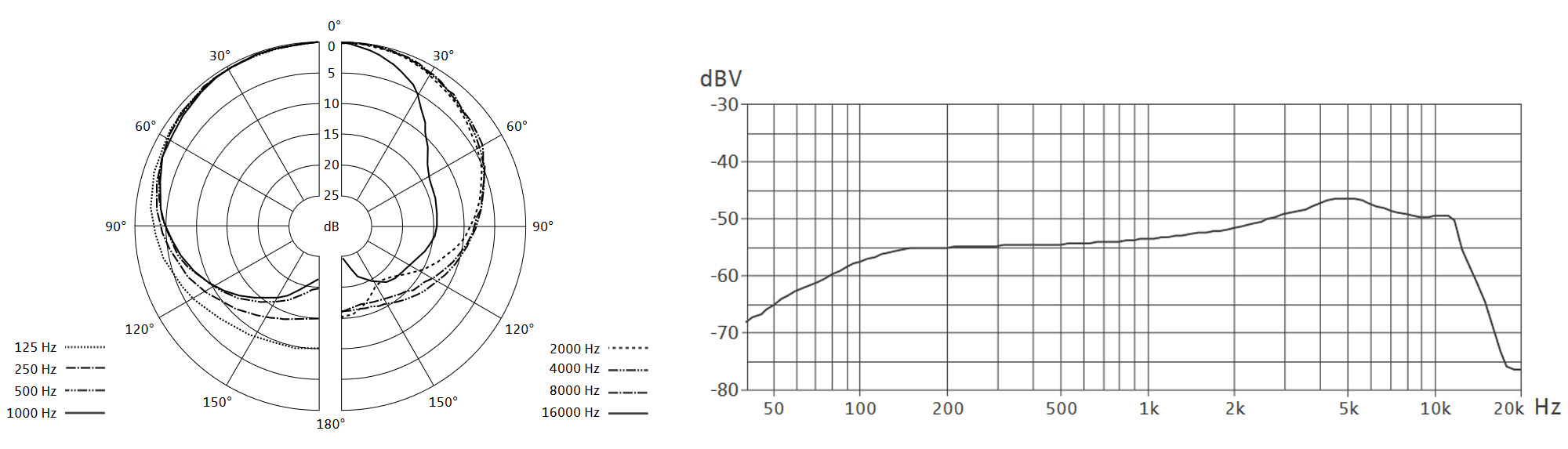 MMD 835拾音头特性。心形指向有效抑制侧后方噪音,2.1 mV/Pa灵敏度优化人声清晰度,尤其适合语音及饱满的中频人声。见下图。