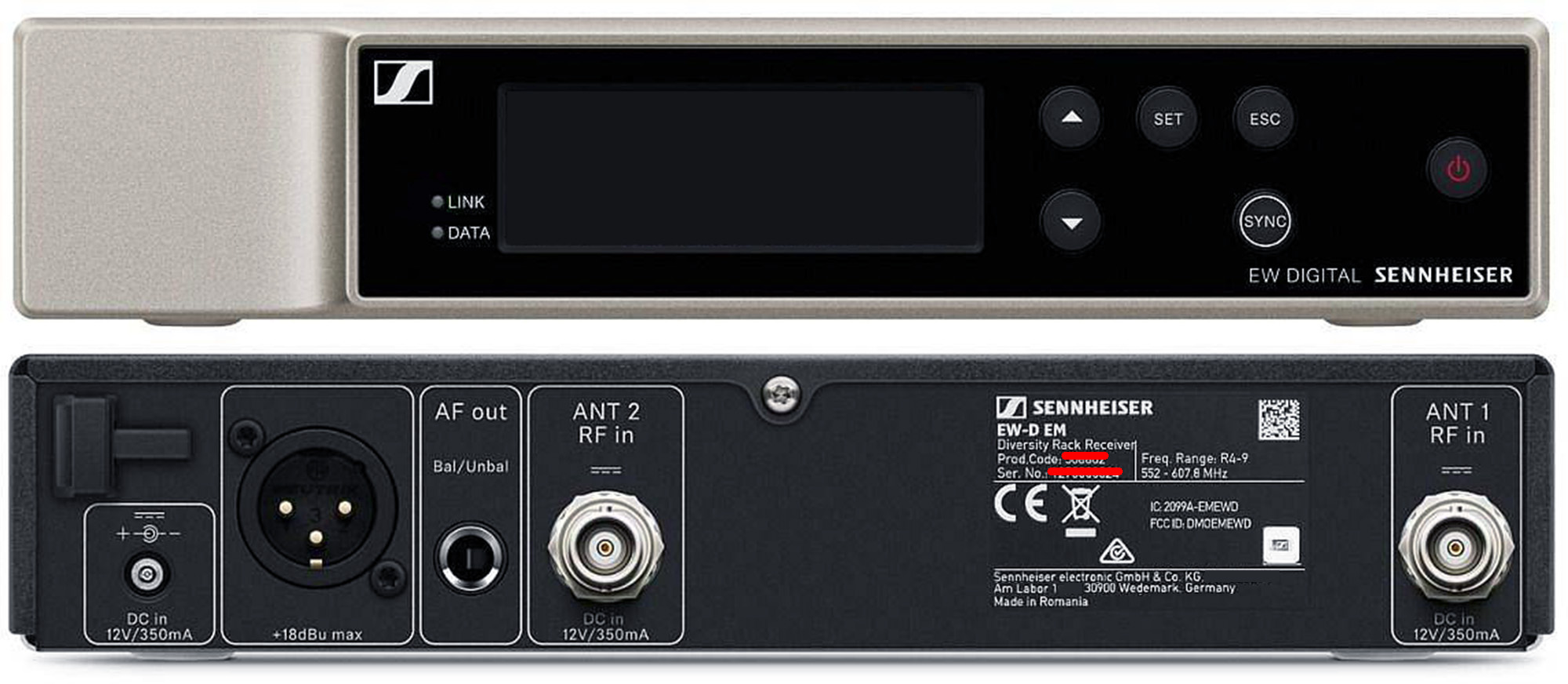 EW-D EM接收机为半机架宽度(212×44×189mm),1U内可并排安装两台。背板集成平衡6.35mm XLR输出、非平衡6.3 mm输出,RF天线输入。